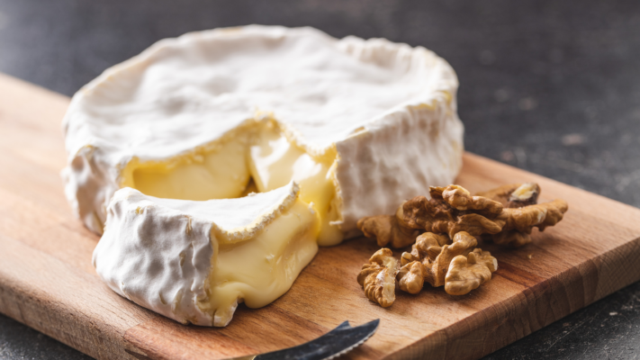 Experimente os tons amanteigados e terrosos do Somerset Brie, que combina lindamente com frutas e biscoitos para um lanche delicioso.